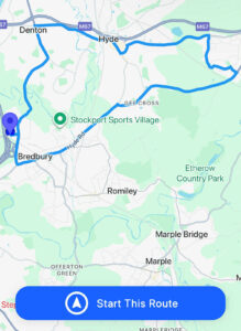 Yes – usually about 20 minutes following sat-nav directions or traffic-sign routes towards Hyde, Romiley, or Marple. Using RouteBuddy to rehearse similar navigation helps you stay confident under guidance.